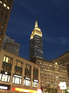 After dinner, I went back to my room and got ready for bed again. I saw the Empire Building as I drew the curtains and it was blue! My favorite color as it made me smile. I did get everything organized because I had to leave tomorrow morning. Bed, book and movie was next! Then sleep came as I could hear the traffic all about as it wasn't that bad. I did get all the books in my carry on and in my back pack.